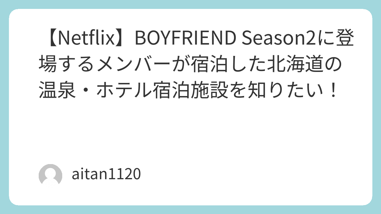 BOYFRIEND Season2に登場する宿泊施設@北海道