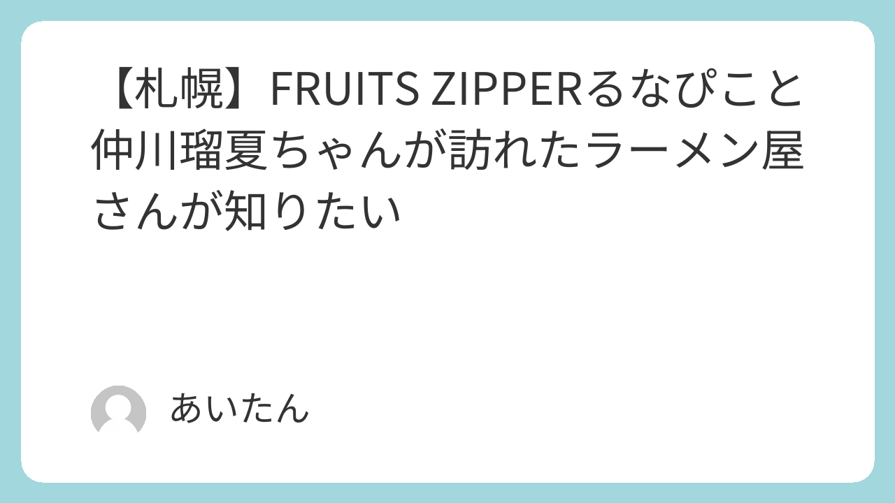 【札幌】FRUITS ZIPPERるなぴこと仲川瑠夏ちゃんが訪れたラーメン屋さんが知りたい♡